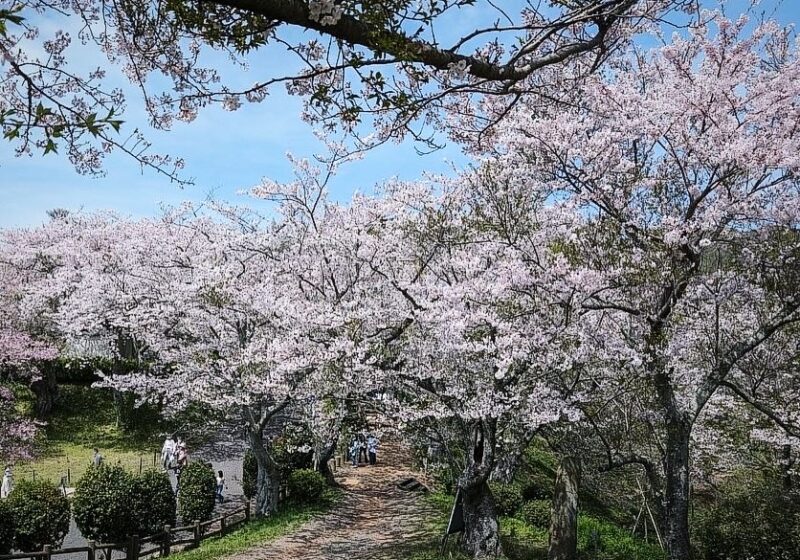約1万本の桜が山肌を染める、市内屈指のお花見名所です。山頂からは瀬戸内海を360度見渡す大パノラマが広がり、晴れた日は九州や四国まで望めます。海と空の青と桜色のコントラストは、春だけの特別な絶景です。
