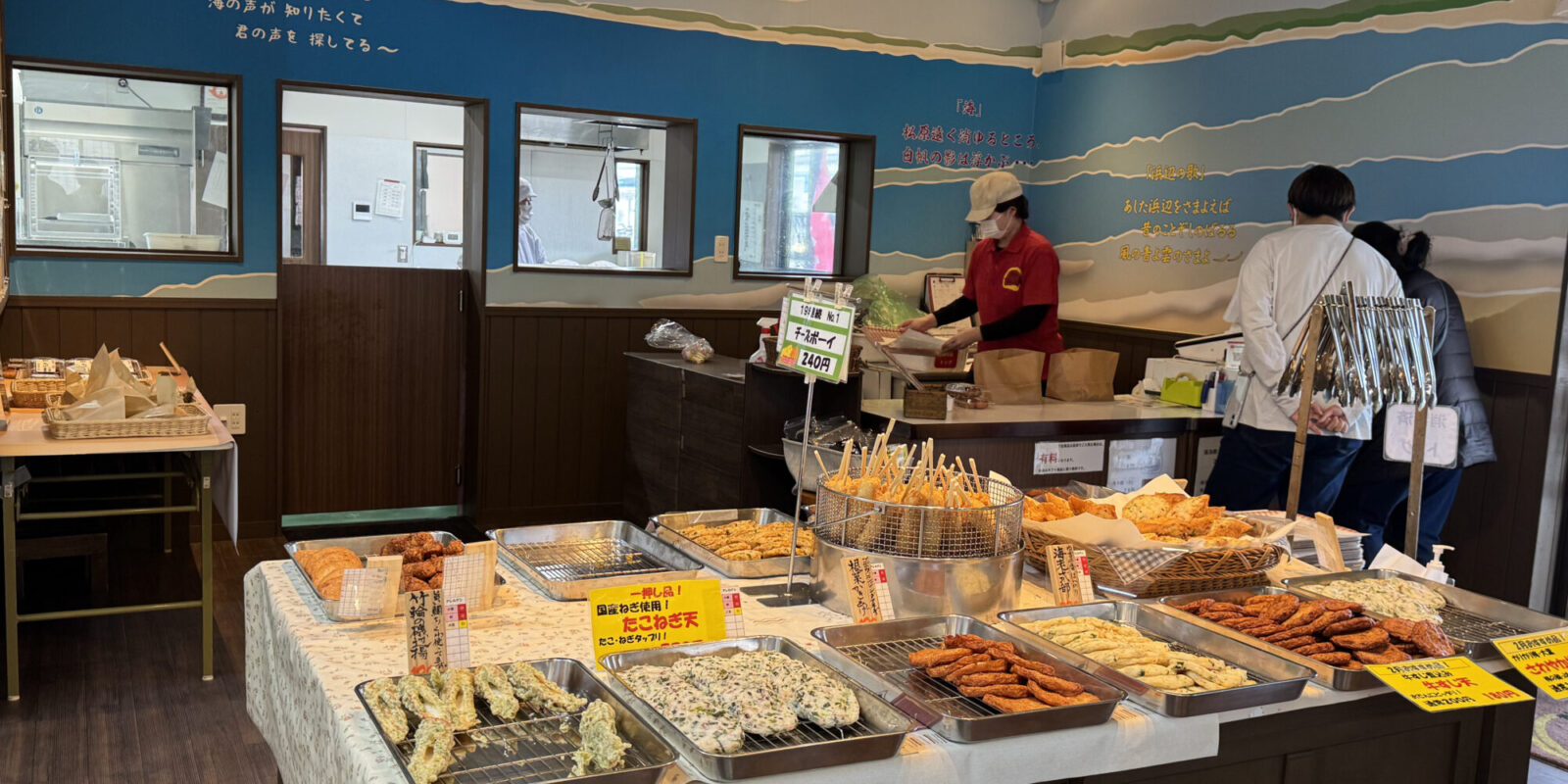 埴生漁港のそばで創業60年以上の歴史を誇る西海食品直営の「浜のてんぷら屋」が、この冬、装いも新たに生まれ変わりました。