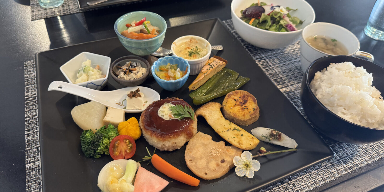 靴を脱いで上がる店内は、古民家ならではの木の温かみと、どこか懐かしい空気に包まれた癒やしの空間。母娘で営むこちらのお店の看板メニューは、地元の旬野菜をふんだんに使った「灯ランチ」です。少しずつ色々な料理が楽しめる和洋折衷のワンプレートは、彩りも豊かで心にも体にも優しい味わいです。